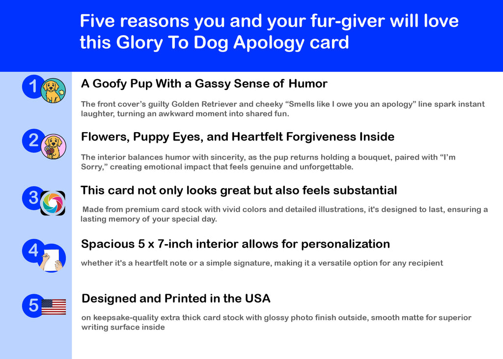 The cover of this playful apology card sets the tone with a Golden Retriever making the funniest guilty face, paired with the phrase “Smells like I owe you an apology.” It’s a lighthearted way to admit fart — oops, I mean fault — while breaking the tension. The silly expression of the pup captures the universal feeling of making a mistake, but softens it with humor, charm, and warmth.