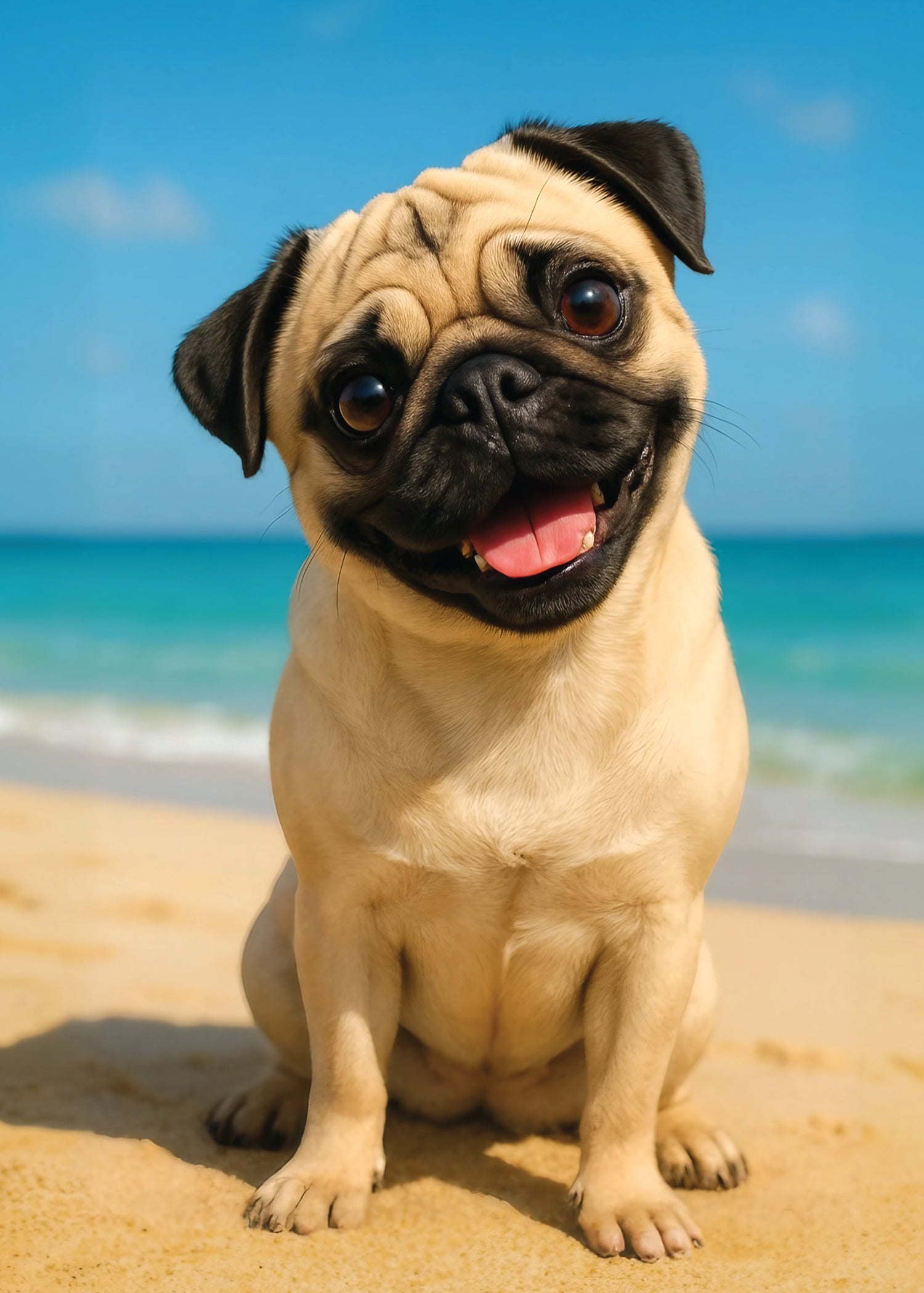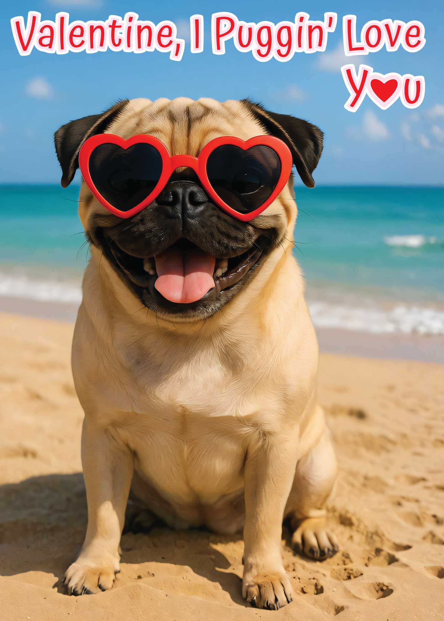 Give your Valentine a burst of sunshine and pure pug joy with this adorable beach-day Valentine’s Day card! The cover features an irresistibly happy pug rocking bright red heart-shaped sunglasses and delivering the playful message, “Valentine, I Puggin’ Love You.” It’s the perfect mix of cheeky humor and genuine affection—ideal for couples, partners, crushes, spouses, or anyone who lights up your world. Inside, the sweet follow-up message, “Will You Be Mine? Happy Valentines Day,” adds a warm, sincere touch that turns an already smile-worthy card into something truly heart-melting. Whether you’re celebrating a long-term love, a new spark, or simply want to brighten someone’s day with a little beachy charm, this card delivers happiness, laughter, and heartfelt connection in one lovable pug-themed package.