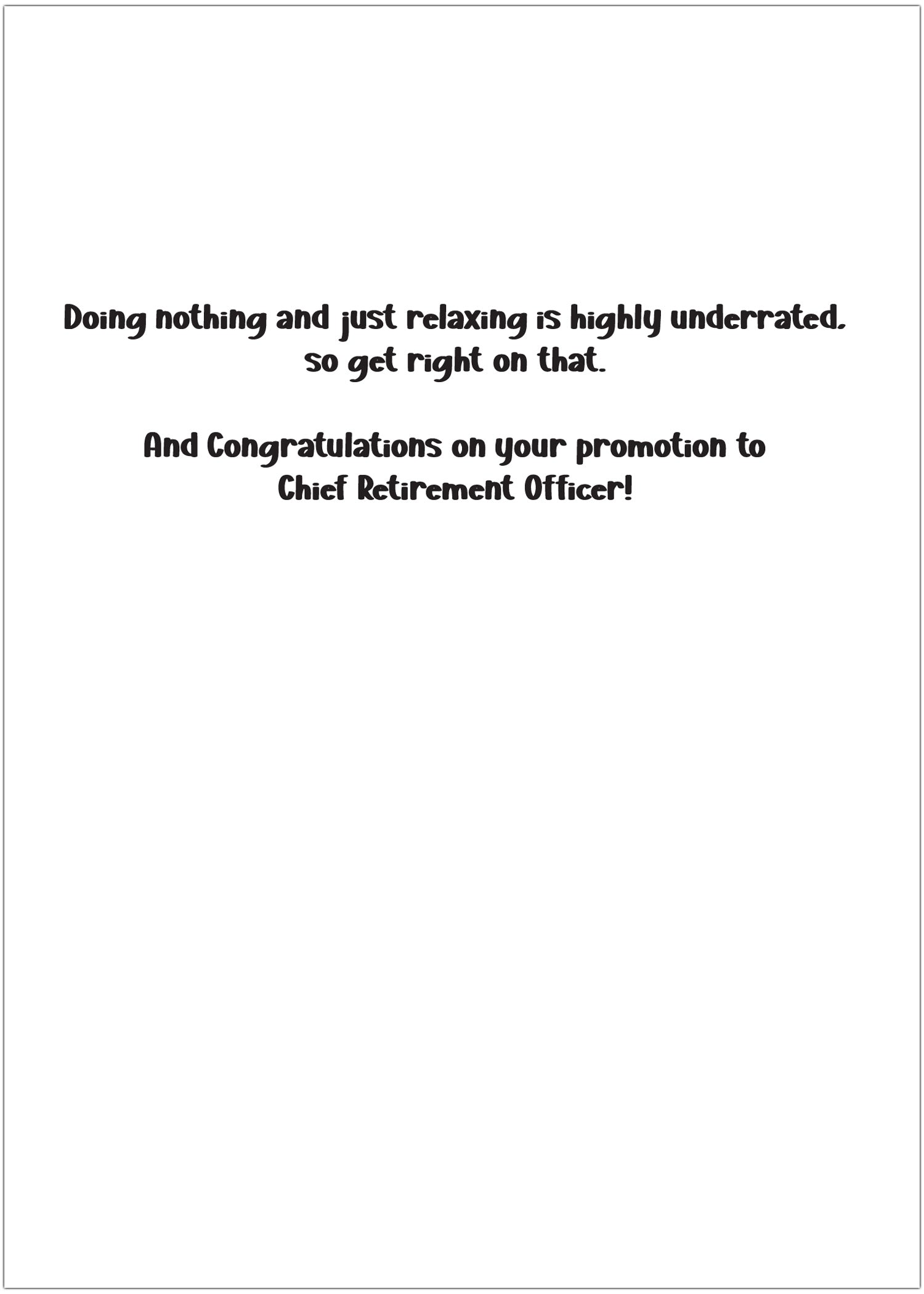 - Message: Relax Everyday Take It Really Easy Do nothing! / Doing nothing and just relaxing is highly underrated, so get right on that. And Congratulations on your promotion to Chief Retirement Officer!