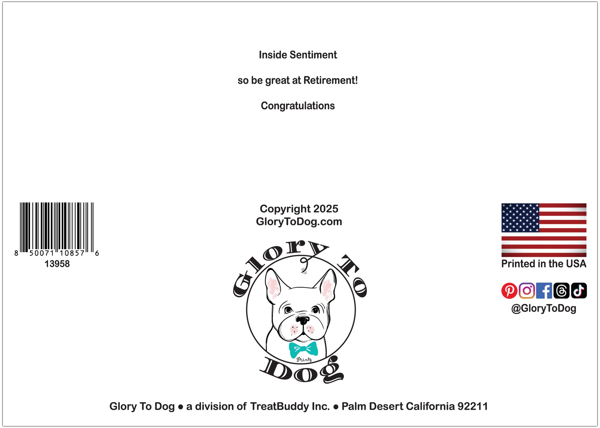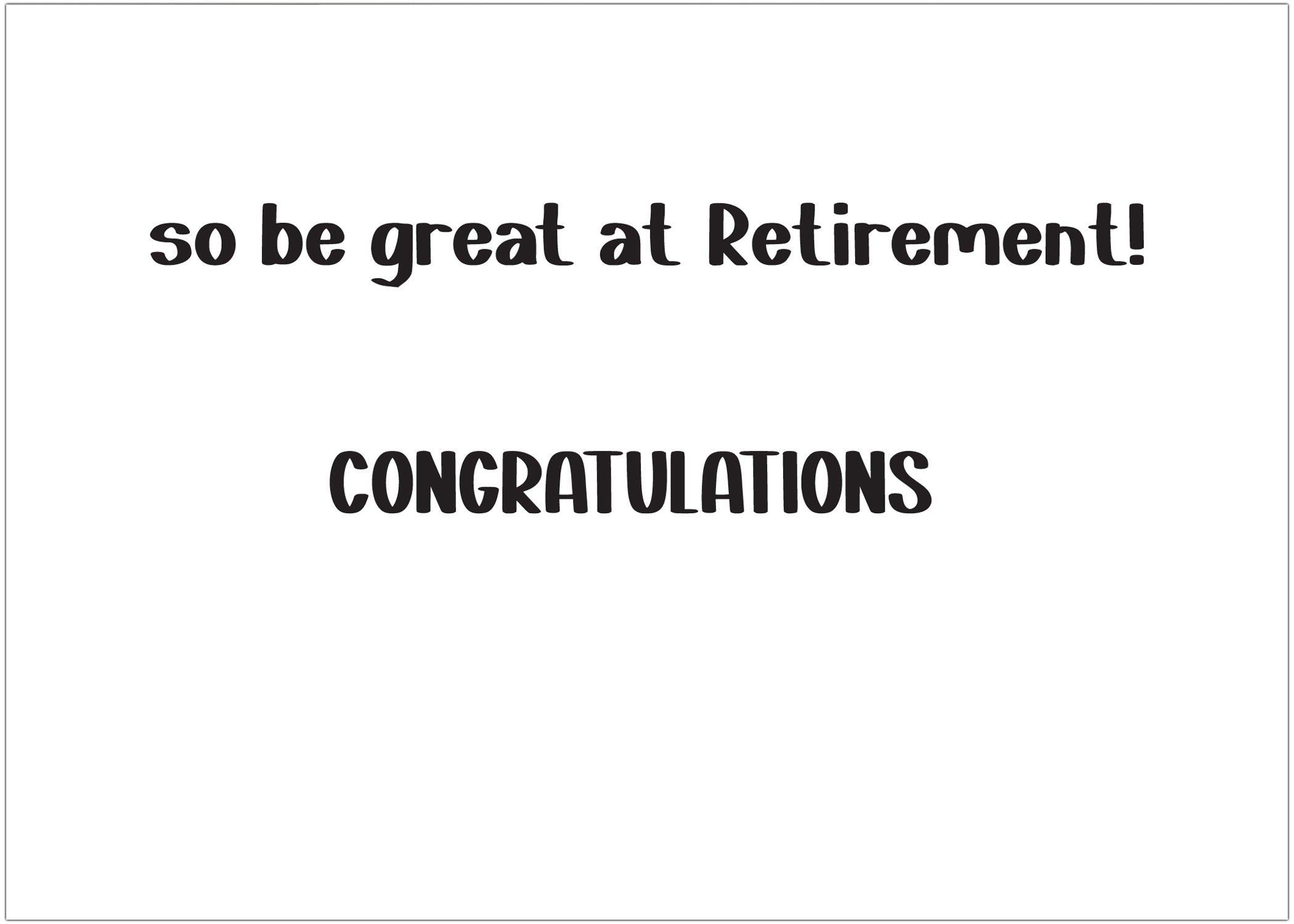 - Message: You can't Retire from being Great / so be great at Retirement! Congratulations
