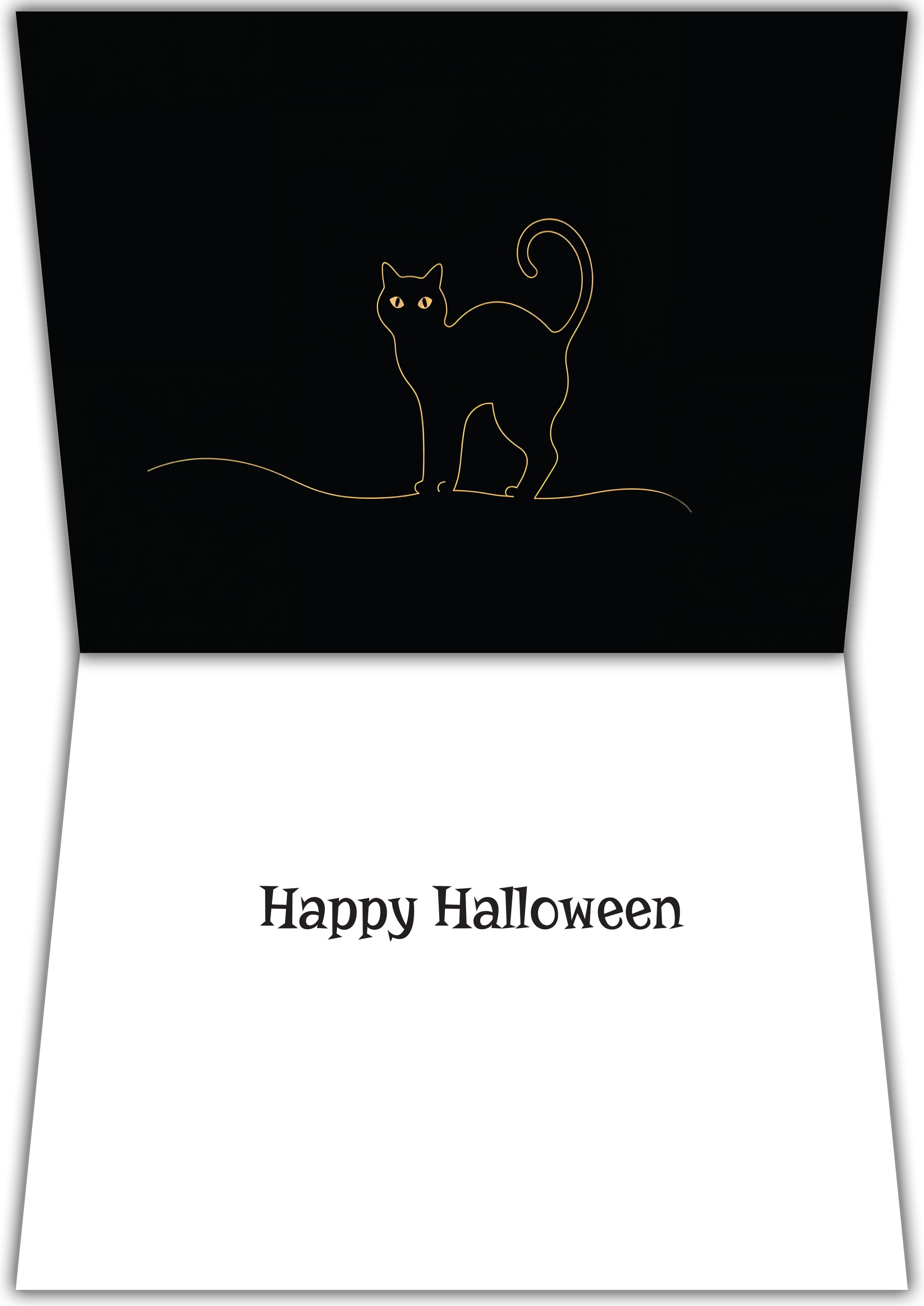 Bring a little spooky fun to your Halloween greetings with this playful black cat card. The cover features a lineup of mischievous felines silhouetted against a glowing orange sky, with the cheeky phrase “You’re Freakin’ Meow!”—a perfect mix of sass and seasonal charm. Inside, a sleek golden outline of a curious cat with glowing eyes sets the mood, paired with the simple but heartfelt message “Happy Halloween.” This balance of humor and elegance makes it just right for cat lovers, Halloween enthusiasts, or anyone who enjoys a touch of whimsy in their holiday. Whether you’re sending it to friends, family, or co-workers, the design captures both the playful spirit of the season and the classic spookiness of All Hallows’ Eve. It’s more than just a card—it’s a keepsake that blends laughter, warmth, and a little feline mystery, leaving the recipient smiling from ear to ear.